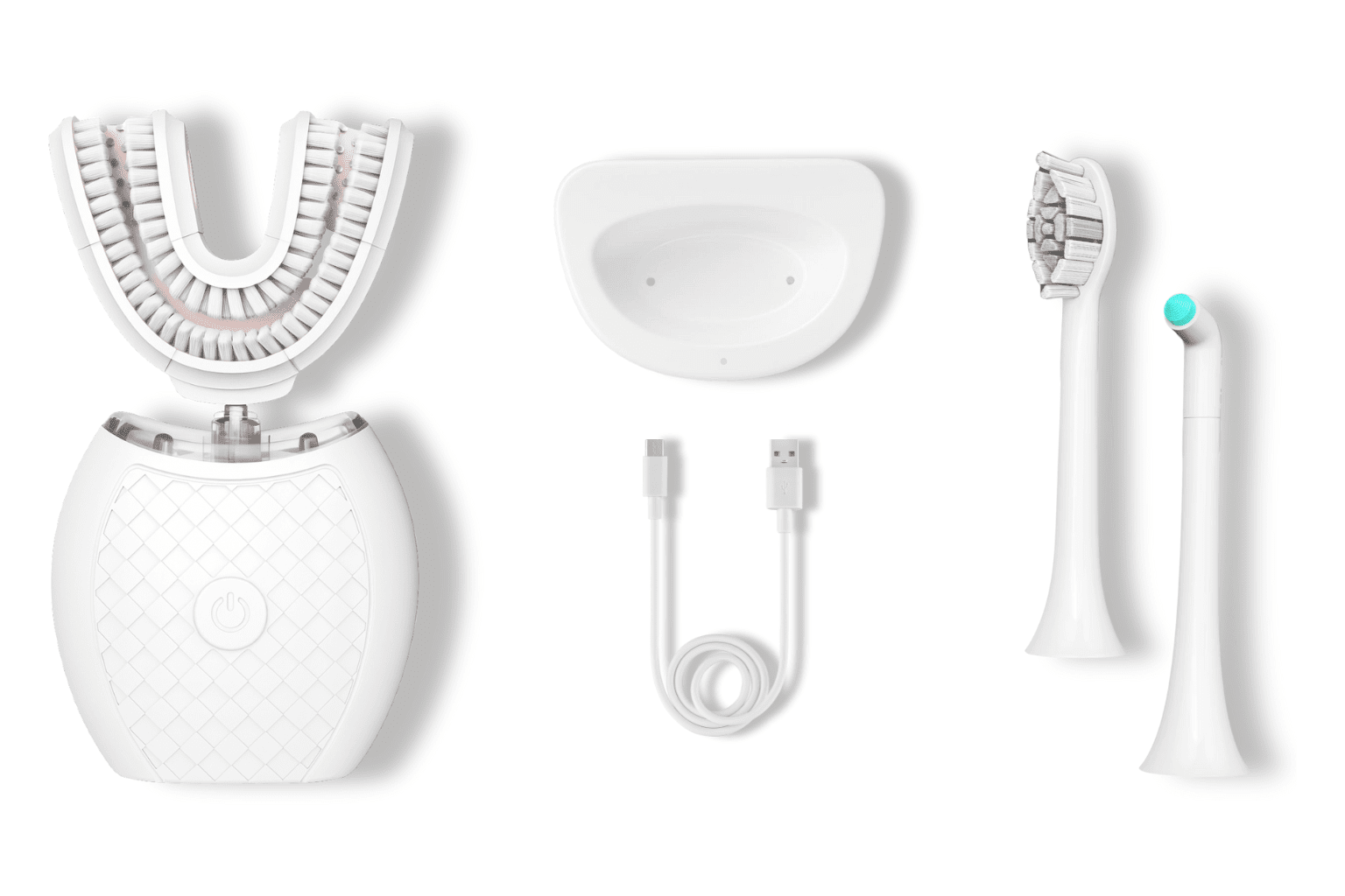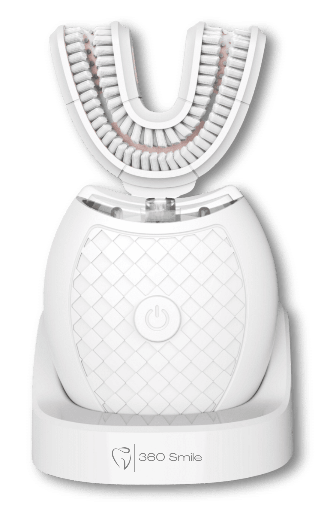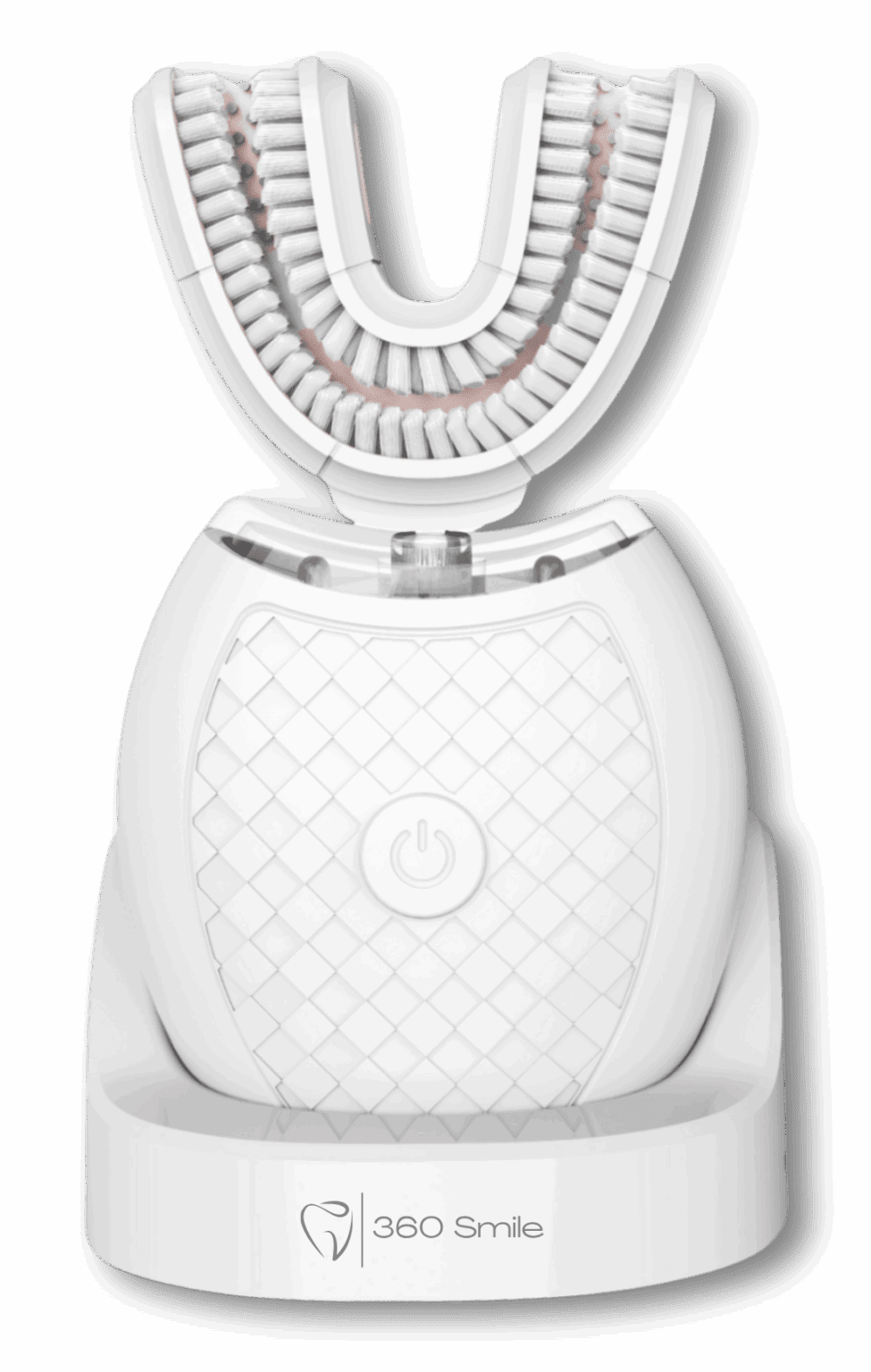 Szczoteczka 360 Smile – innowacyjna szczoteczka soniczna z nylonowym włosiem w kształcie litery „U”, która jednocześnie czyści wszystkie zęby w zaledwie kilkadziesiąt sekund.