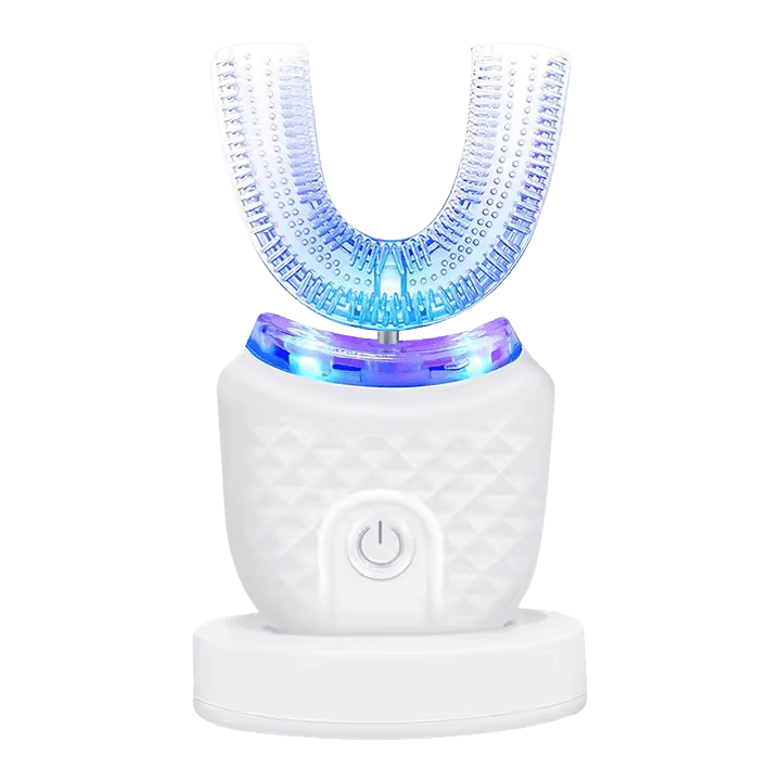Szczoteczka 360 Smile – innowacyjna szczoteczka soniczna z nylonowym włosiem w kształcie litery „U”, która jednocześnie czyści wszystkie zęby w zaledwie kilkadziesiąt sekund.